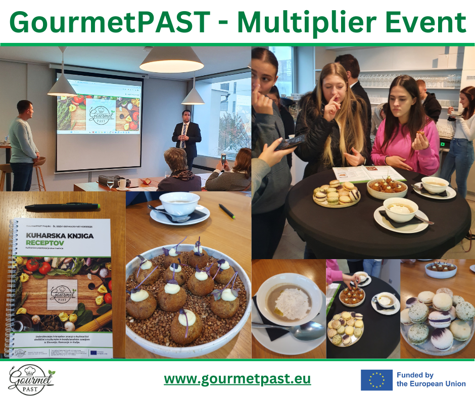 On November 12, VSGT Maribor hosted an inspiring event as part of the international GourmetPAST project – the Multiplier Event. The goal was to present the project’s results, emphasize the importance of preserving culinary heritage, and introduce visitors to the traditional flavors of Slovenian, Italian, and Romanian cuisine.